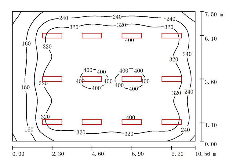 這個圖就是(shì)要知(zhī)道我們布(bù)燈出來的燈符不符合標準,教室燈布出來之後照度能不能達到300以的LX,黑板燈能不能達到500以上(shàng)LX